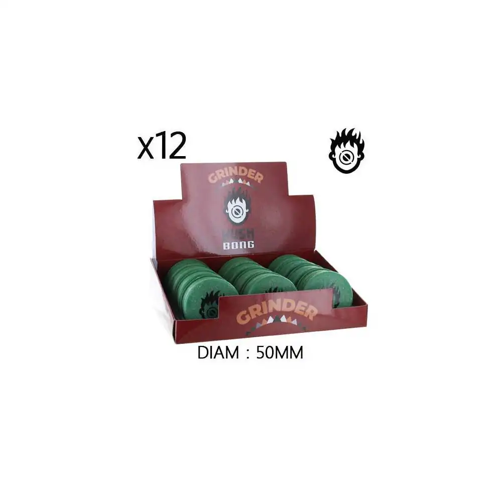Boîte de 12 Grinders en chanvre 50 mm Kush Bong Green Organic