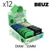 Découvrez cette boîte de 12 grinders chanvre Beuz Cubex de 55mm, fabriqués en matériau 100% biodégradable. Ces broyeurs CBD en 2 parties démontables sont proposés en 4 couleurs attrayantes : bleu, noir, vert et beige.