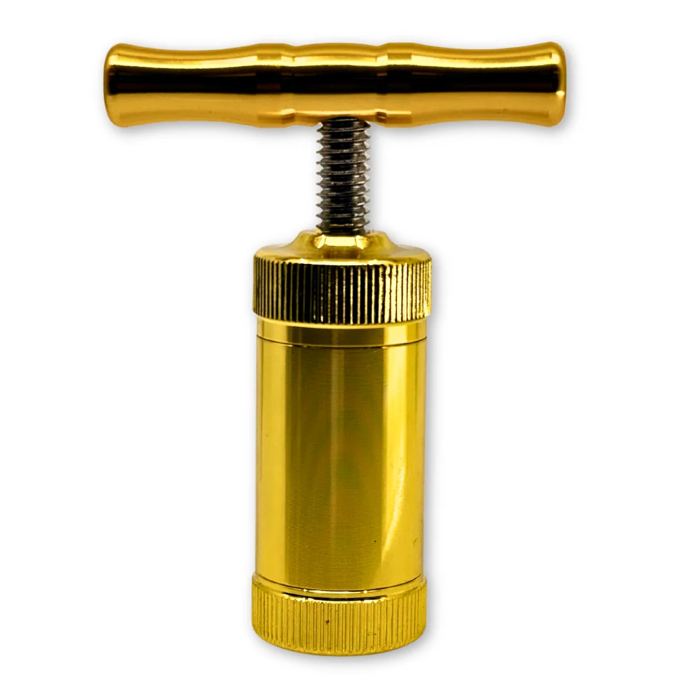 Cette élégante presse à pollen dorée en zinc est l'outil idéal pour extraire facilement le CBD. D'une hauteur de 8,6 cm avec un cylindre de 2,8 cm de large, elle allie fonctionnalité et esthétisme. Son revêtement doré lui confère un aspect haut de gamme.