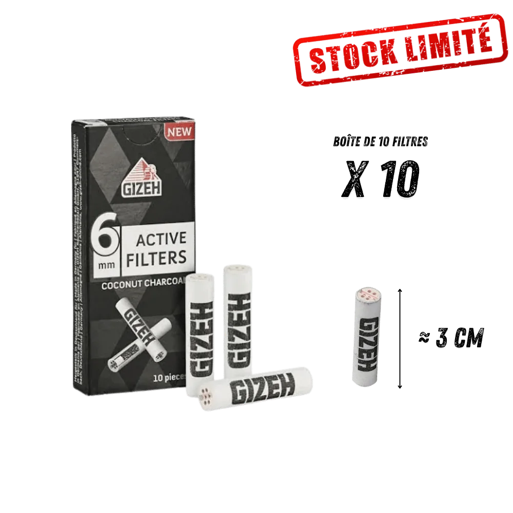 Filtre Gizeh Charbon Actif Coco 6mm - Boîte de 10 Filtres