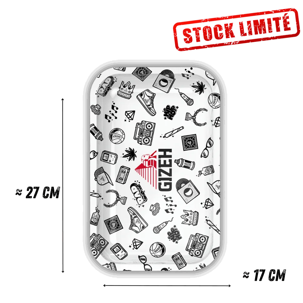 Découvrez le plateau de roulage GIZEH Comic blanc, un accessoire indispensable alliant style et fonctionnalité. Fabriqué en métal premium de haute qualité avec une épaisseur de 0,35mm, ce plateau taille M offre une surface stable et durable. Son design exclusif issu de la collection Trippy & Comic apporte une touche unique à vos sessions. Dimensions optimales de 275x175x23mm pour un usage polyvalent et pratique au quotidien.