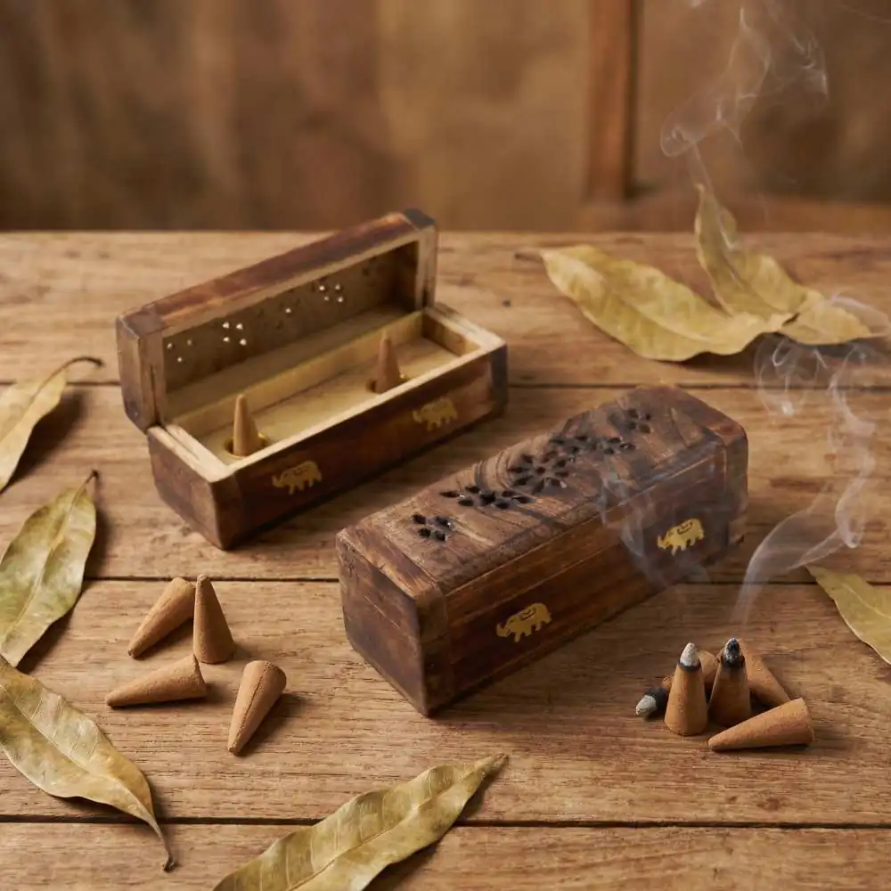 Boîte à Encens en Cônes Authentique en Bois de Manguier
