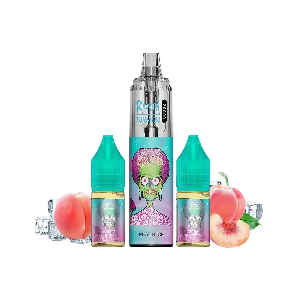 Découvrez le kit Tornado RandM 20K Peach Ice de Fumot, une cigarette électronique rechargeable révolutionnaire qui délivre jusqu'à 20000 bouffées avec sa batterie 850mAh. Ce kit vapotage premium inclut 20ml d'e-liquide saveur Peach Ice aux sels de nicotine 20mg, répartis en deux flacons de 10ml. Équipé d'une résistance mesh 1.0ohm et d'un airflow réglable pour une expérience de vapotage optimale et personnalisée selon vos préférences de vapoteur exigeant.