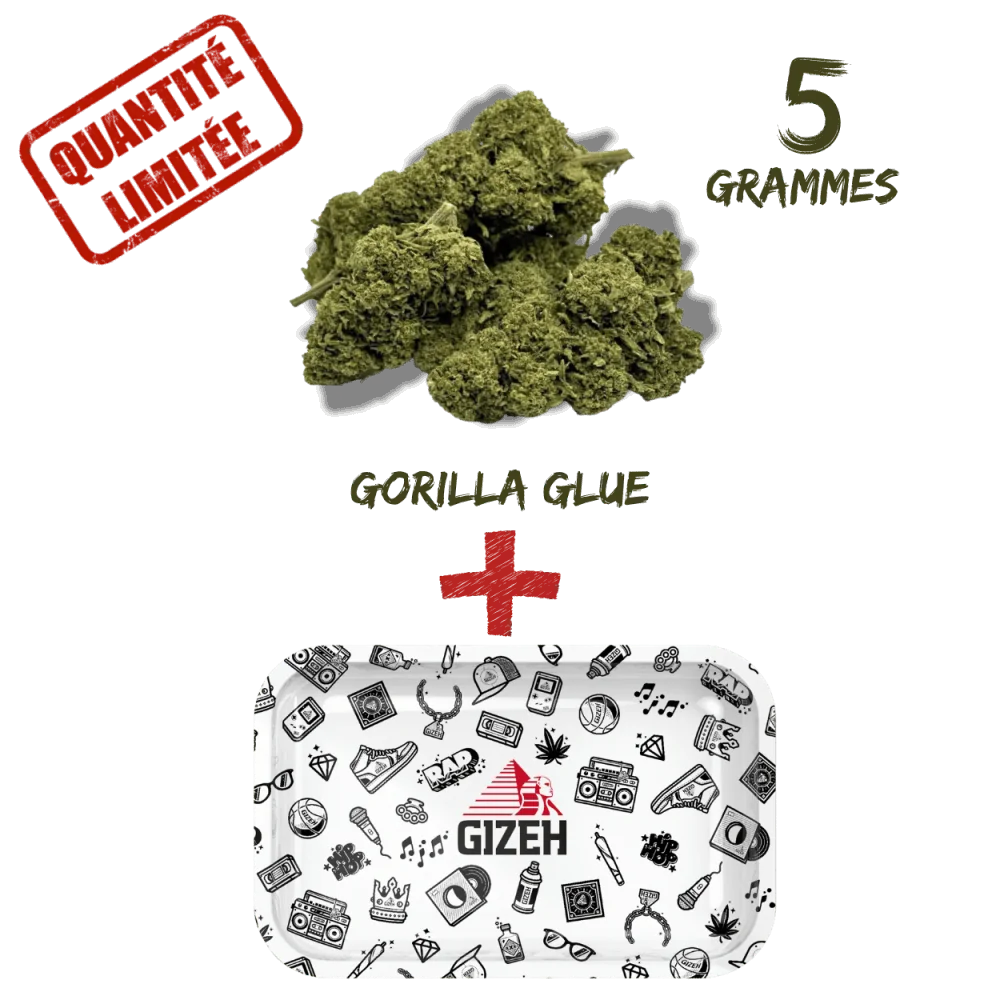 Pack Premium : Fleur de CBD Gorilla Glue + Plateau GIZEH Comic